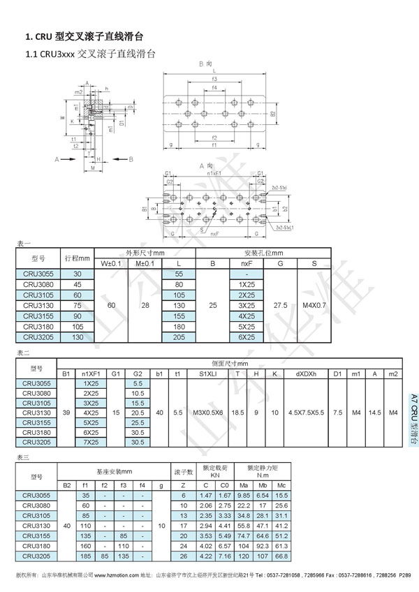 CRU交叉滾子直線滑臺